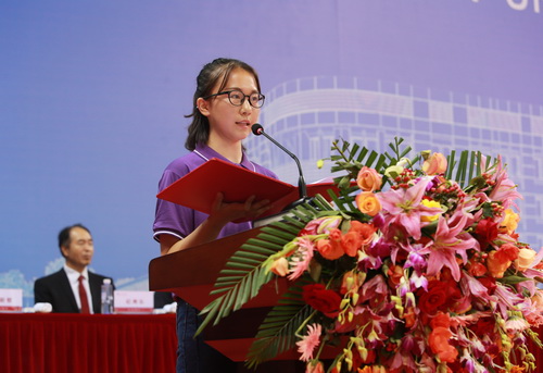 教师代表管理学院林玫教授,校友代表烟台冰轮集团有限公司党委书记、董事长、总经理李增群先生,在校生代表机械工程学院2015级崔奇同学,新生代表经济学院杨睿玭同学,家长代表会计学院闫怡如同学家长衡勤娟女士分别发言。