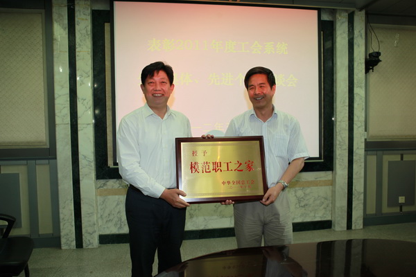 校领导向工会颁发全国模范职工之家奖牌