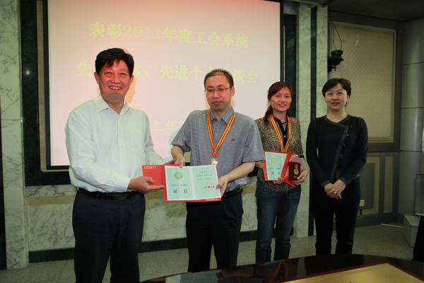校领导向获天津市2011年度五一劳动奖章先进个人计宏伟、唐洋颁奖