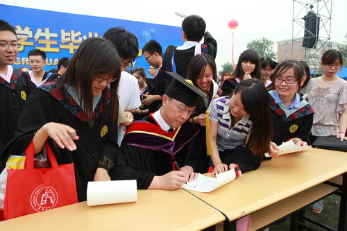 党委书记陈学奇与毕业生在一起