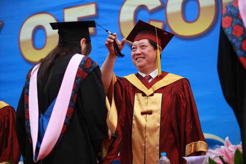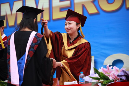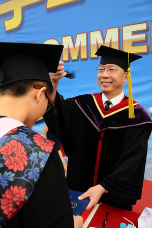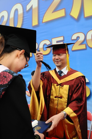 校长刘书瀚为2012届毕业生颁发毕业证学位证并拨流苏