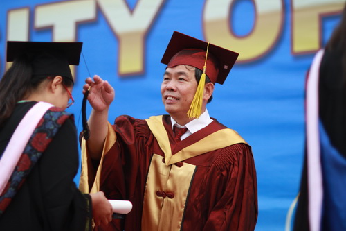 副校长马三津为2012届毕业生颁发毕业证学位证并拨流苏