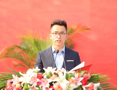 在校生代表、信息工程学院2013级计算机科学与技术专业何捷霖同学发言