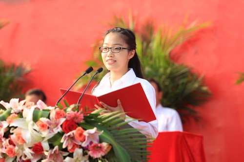 新生代表、商学院宝石及材料工艺学专业蒋璐莎同学发言