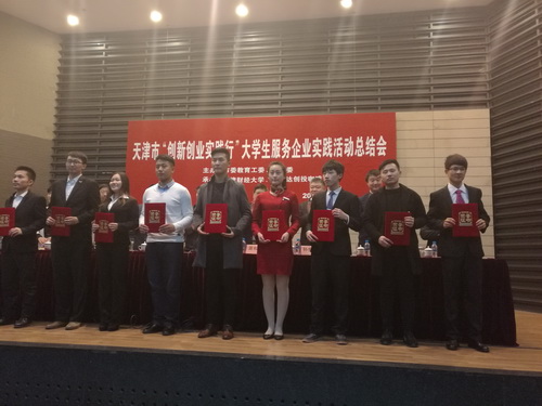 12月2日,由市委教育工委、市教委主办的天津市“创新创业实践行”大学生服务企业实践成果展示总结会在天津财经大学举行。信息工程学院的“新维校园”项目团队获“优秀实践团队标兵”荣誉称号,并在总结会上作经验分享。生物技术与食品科学学院的“黑果枸杞蜂蜜发酵果酒”研制团队获“优秀实践团队”荣誉称号。beat365官网荣获“优秀组织单位”。