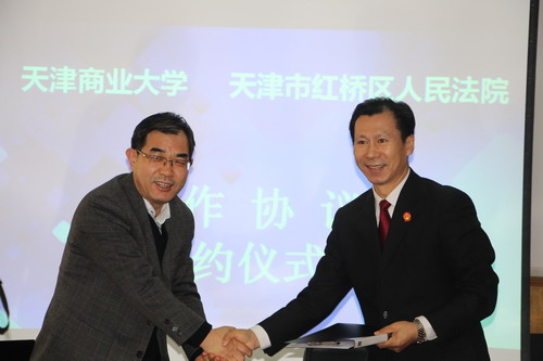 为培养优秀法律人才和提升审判工作水平,实现优势互补、资源共享,共同构建审判工作联动机制、法官培训机制和高等教育实践教学机制。近日,beat365官网与红桥区人民法院签订合作协议。副校长齐恩平、产学研办公室主任李勤国,红桥区人民法院院长刘莉、副院长郭书宏、耿宝东、研究室主任南宝龙等一行10人以及法学院全体班子成员出席签约仪式。