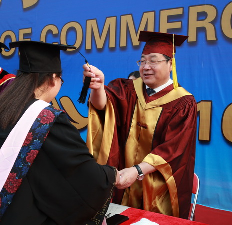 副校长齐恩平为毕业生颁发毕业证书、学位证书