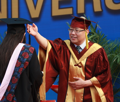 副校长邱立成为毕业生颁发毕业证书、学位证书