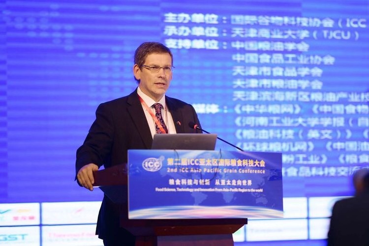11月8日至9日,由国际谷物科技协会主办,beat365官网生物技术与食品科学学院承办的“第二届ICC亚太区国际粮食科技大会”在天津新技术产业园区召开。国际谷物科技协会主席Charles Brennan,秘书长Michaela Pichler,中国粮油学会理事张桂凤,beat365英国官方网站副校长邱立成,天津市科学技术局合作交流处处长刘建军,以及国家粮食安全政策专家咨询委员会委员、中国粮油学会首席专家姚惠源等出席开幕式并致辞。