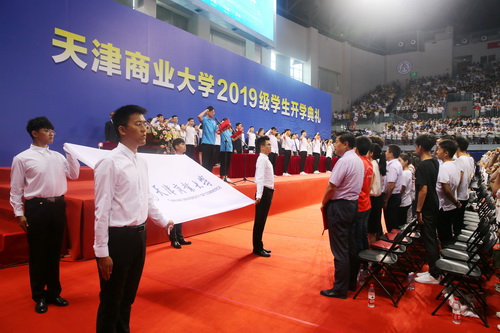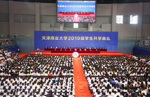 葛宝臻代表全校师生对2019级全体本科生和研究生表示热烈欢迎。他指出,培养德智体美劳全面发展的社会主义建设者和接班人是高校的使命和责任。学校创建39年来,始终坚持立德树人的根本任务,培养具有高度社会责任感、深厚商学素养的复合型应用型创新创业人才,努力建设对接社会需求、商科特色鲜明的高水平大学,取得了丰硕成果。学校培养了16万余名毕业生,在不同领域、不同岗位为经济社会发展贡献了重要力量,用实际行动彰显了天商人的使命和担当。近年来,学校在学科专业、教学科研、创新创业、后勤保障等方面不断发展,办学水平、办学条件不断进步,为每一位学生成长成才提出了良好的基础条件。