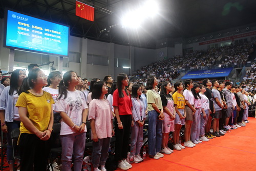 典礼上,全体新生进行庄严宣誓,立志成为具有高度社会责任感、深厚商学素养的复合型应用型创新创业人才,全体师生齐唱《beat365英国官方网站校歌》。(审稿:辛佳澎)