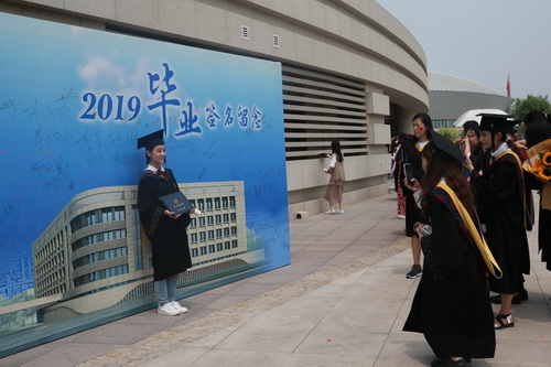 毕业生在签名墙留念