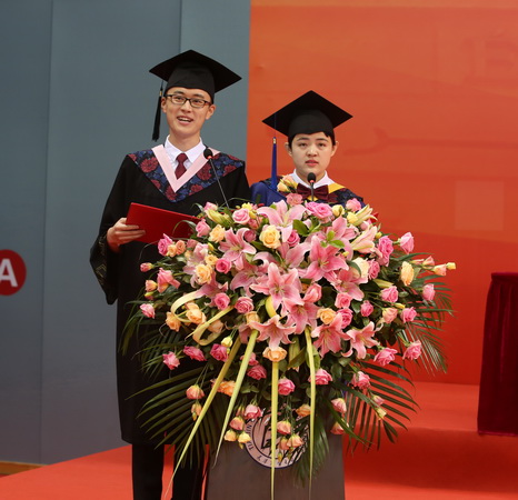 教务处处长、校学位评定委员会秘书长刘小军教授宣读了毕业生毕业及授予学位的决定。天津市首批“青马工程”学员生物技术与食品科学学院硕士毕业生段亚云,保送北京交通大学的国际教育合作学院本科毕业生田原代表2019届毕业生发言,分享了大学学习生涯的收获和感悟,表达了对大学美好时光的眷恋和不舍,对师长、父母的无私奉献和辛勤付出的感激之情。