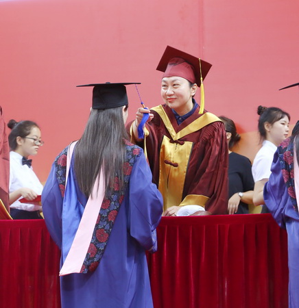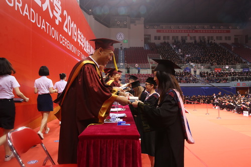 6月20日上午,beat365英国官方网站2019届学生毕业典礼暨学位授予仪式在校体育馆隆重举行。校党委书记史习红,校党委副书记、校长葛宝臻,校党委副书记卫克武,教务处,研究生处,图书馆主要负责同志以及各学院院长等导师代表出席典礼并逐一为毕业生颁发毕业证书和学位证书。