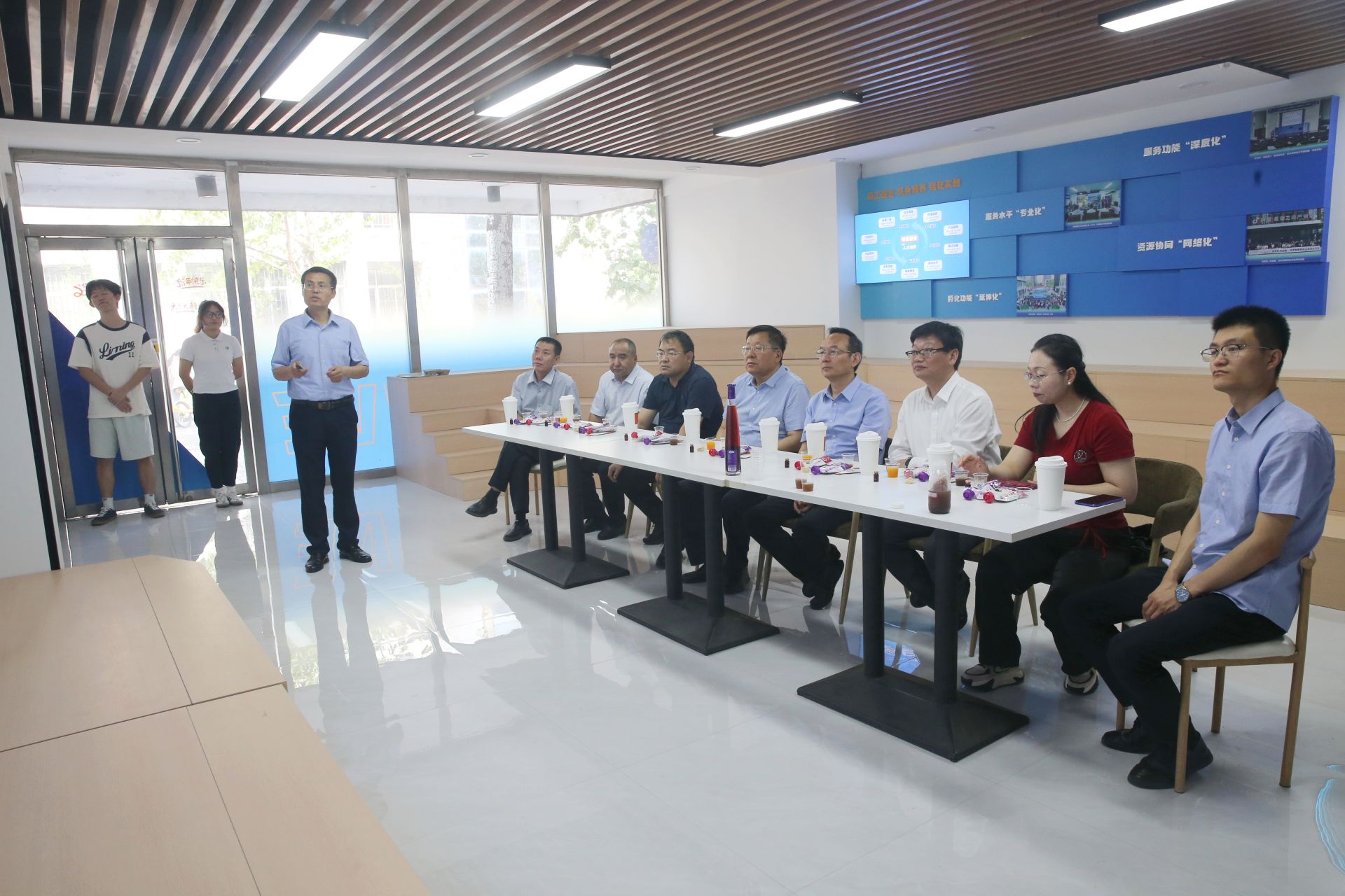 座谈会前,王志坚一行参观了学校微渡众创空间和环境能源+X创新实验室,详细了解学校教育教学特色。(审稿:郭景旺)