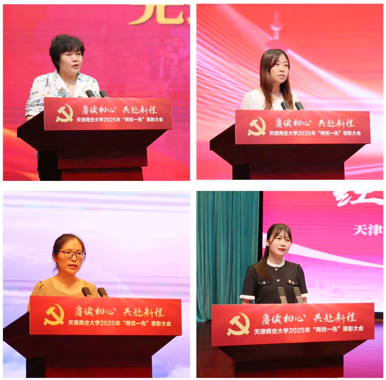 学校先进二级党组织代表机械工程学院党委书记张莹、先进党支部代表经济学院经济系教师党支部书记李颖、优秀共产党员代表马克思主义学院教师刘文佳、优秀党务工作者代表信息工程学院辅导员焦红分别作典型发言。