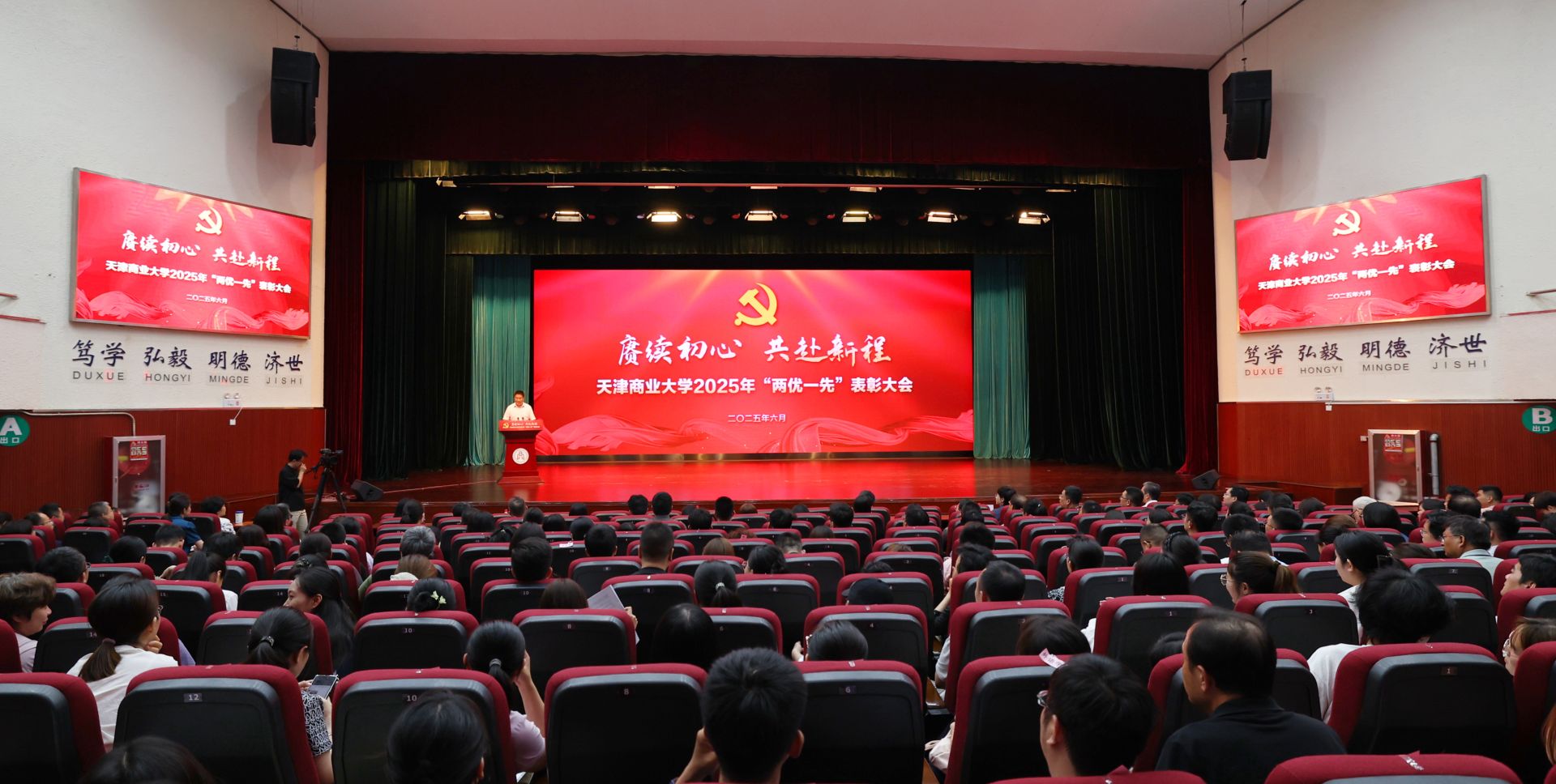 6月30日下午,beat365英国官方网站2025年“两优一先”表彰大会在科学会堂举行。校领导张亚、陈冠益、王立云、崔强、余江出席,获表彰的党员和党组织代表、全体中层党员领导干部、师生党支部书记、专职组织员和党员教师代表共计400余人参加。