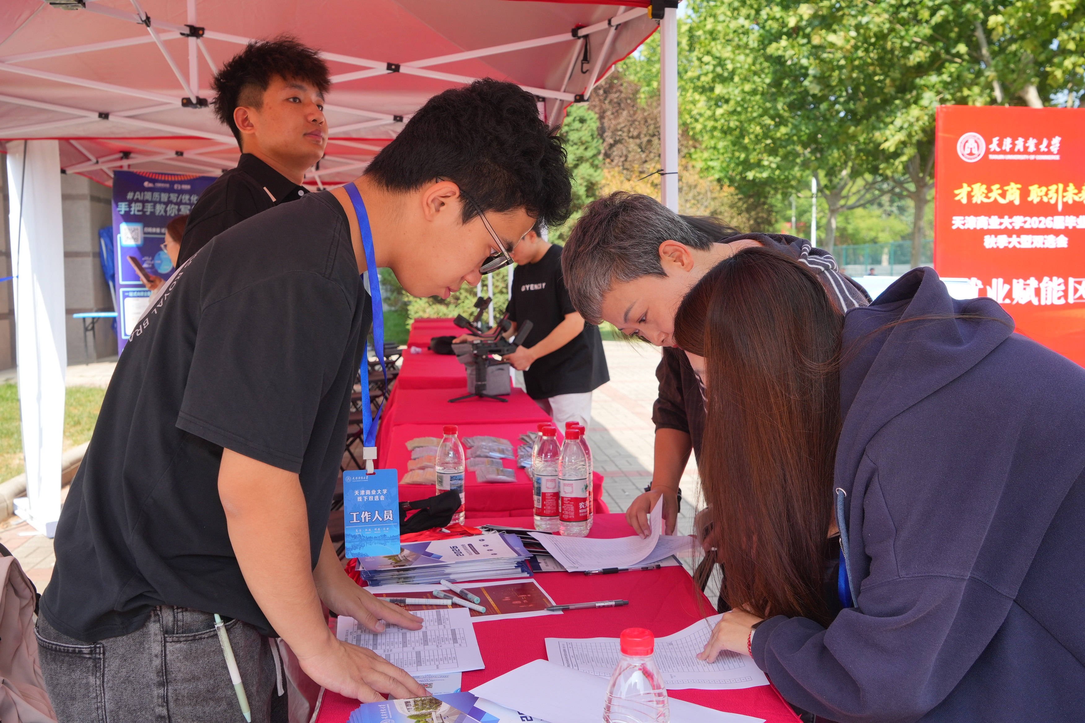 9月24日下午,学校“才聚天商 职引未来”2026届毕业生秋季大型双选会在图书馆南广场举行。本次活动由党委学工部与各二级学院联合举办。校党委书记张亚亲临现场指导工作,并与用人单位代表和毕业生亲切交流。党委学工部负责同志,各学院领导班子成员和校院两级就业指导教师全程参与,为毕业生提供全方位的就业指导服务。