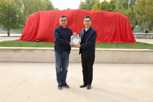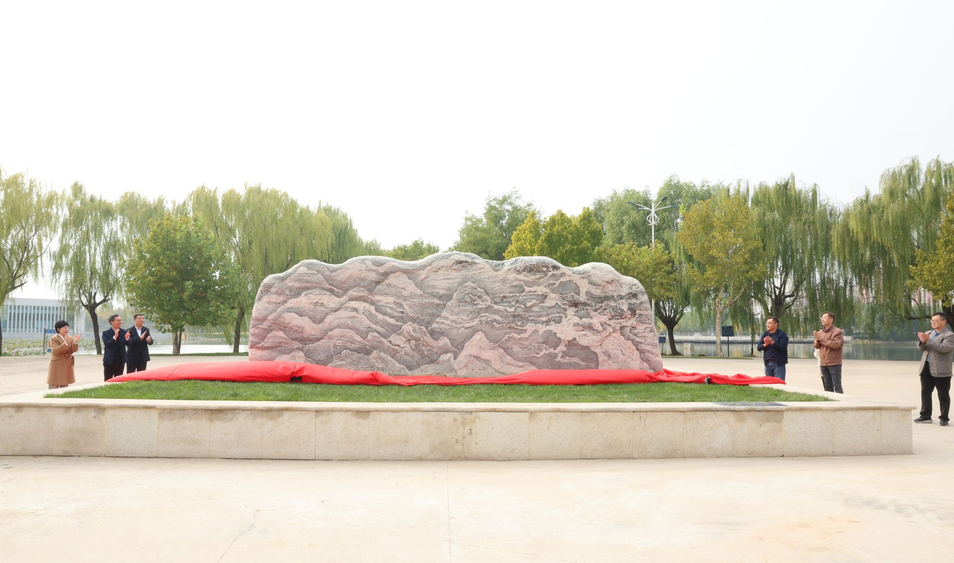 仪式上,张亚为校友包鹏飞颁发捐赠证书并赠送纪念品,参会领导共同为景观石揭幕。