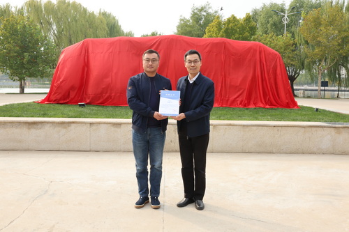 校党委书记张亚为校友包鹏飞颁发捐赠证书