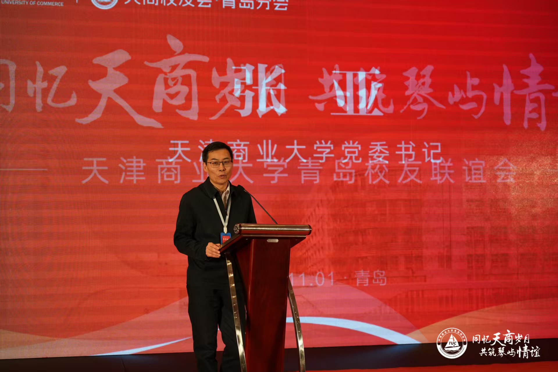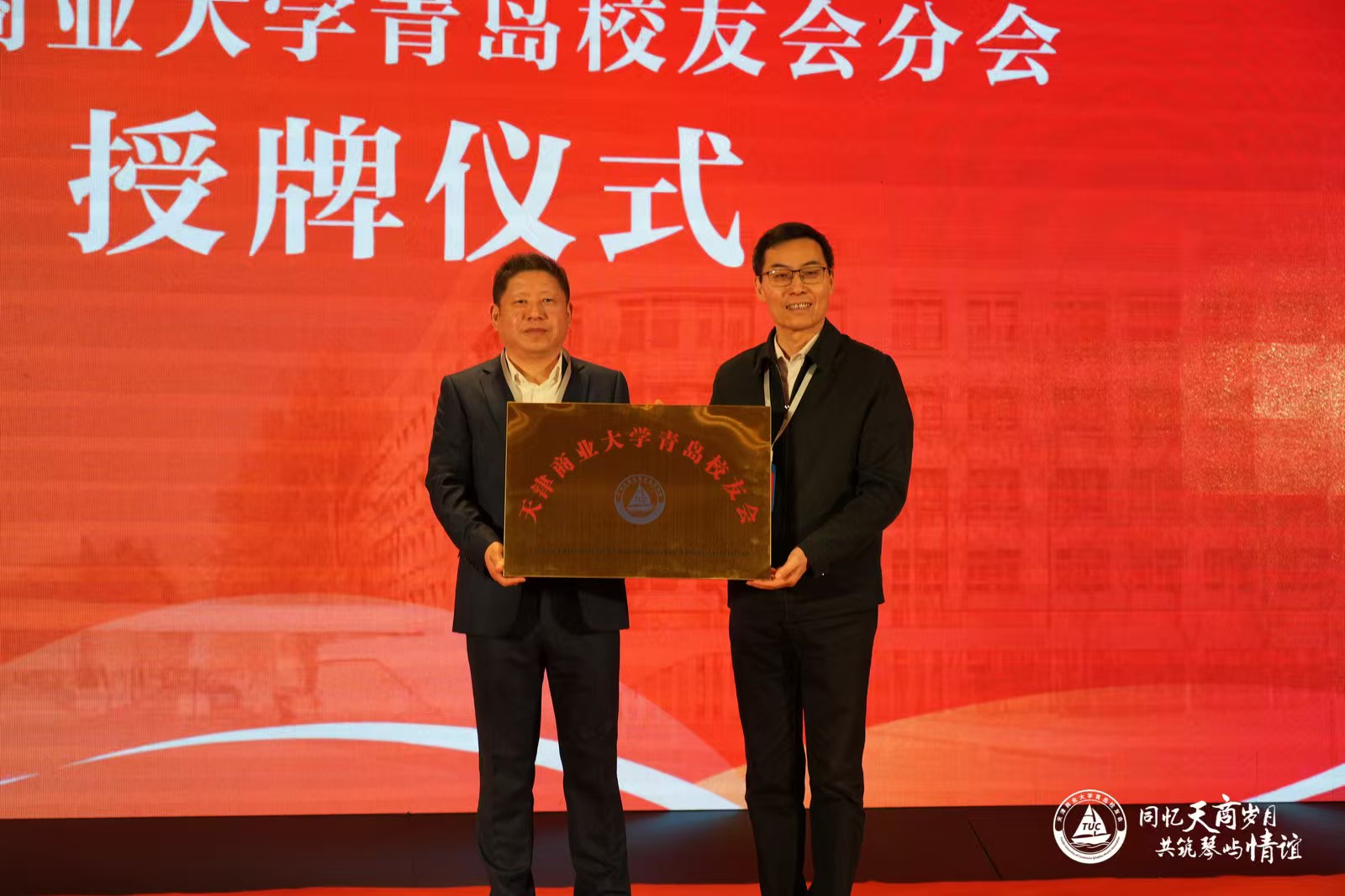 北京校友会会长刘征、天津校友会会长李富民、烟台校友会会长李强、威海校友会会长谢富臻分别登台祝贺,传递深情厚谊,彰显天商校友“一家亲”的精神。