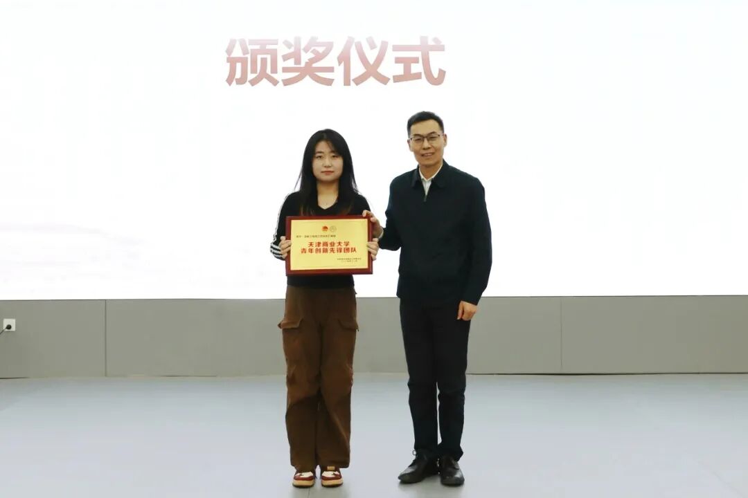会上,校团委负责人宣读了授予《商道之范旭东》剧组“beat365英国官方网站青年创新先锋团队”的表彰决定。随后,张亚与王立云共同向剧组演职人员代表颁发奖牌和荣誉证书。