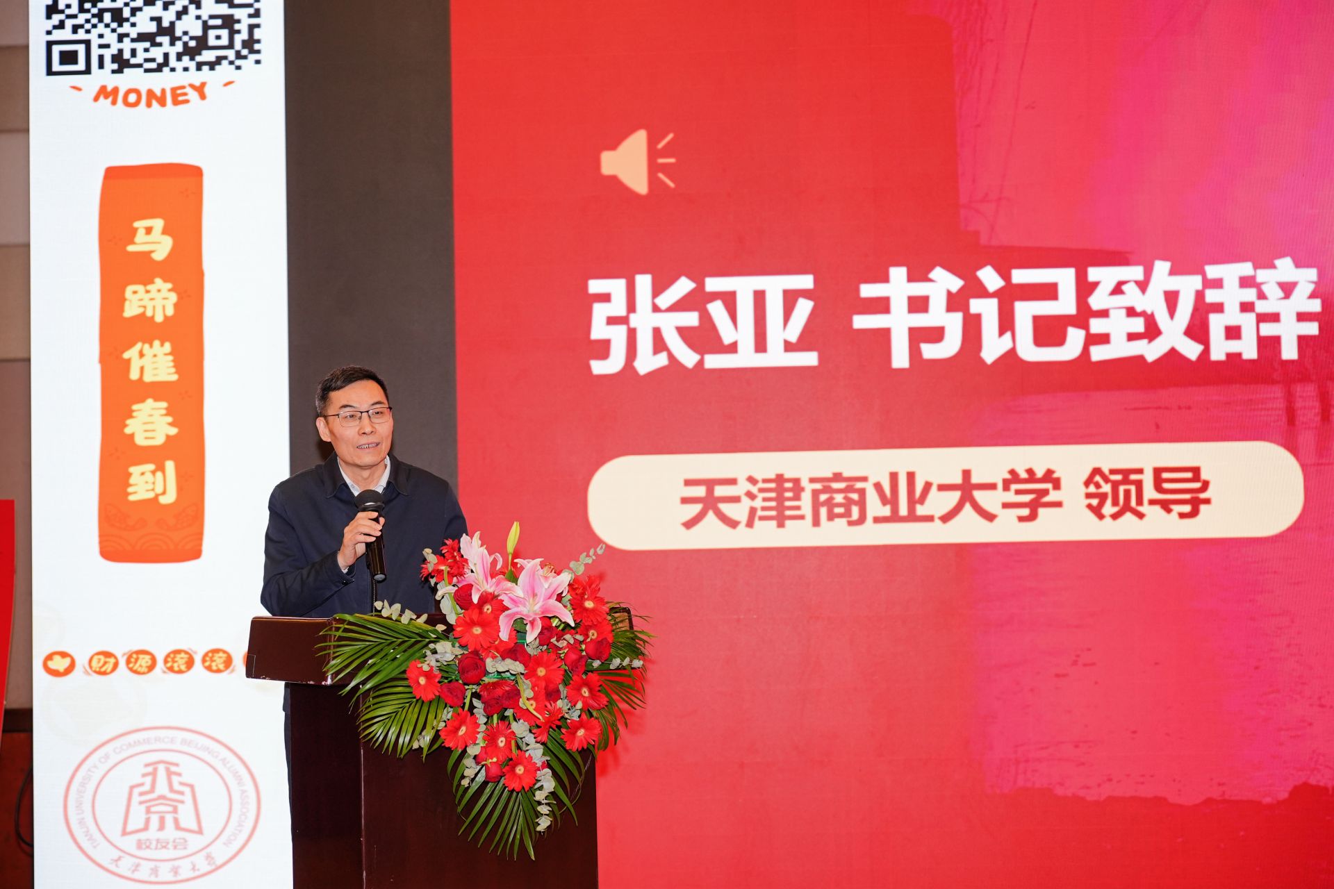 张亚代表学校对北京校友会年会的召开表示祝贺,向所有关心支持母校建设发展的广大校友表示衷心感谢,并提前向各位嘉宾、在京工作学习校友,以及海内外的天商校友致以诚挚问候和新年祝福!张亚从学校新发展、校园新变化、校友新贡献三方面简要介绍学校一年来的相关情况。