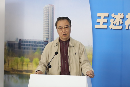 张亚在致辞中代表学校向王述祖先生致以崇高敬意,向各位领导、嘉宾表示热烈欢迎,并向王述祖及各界人士长期以来对学校建设改革发展的关心支持致以诚挚感谢。他表示,能够承办此次活动,天商倍感荣幸。本次展览作品主题鲜明、风格独特、内涵丰富,充分体现了王述祖先生的艺术追求与家国情怀,特别是对天津文化、天津精神的深厚情感,是一份宝贵的育人资源。能够承办此次活动,天商倍受鼓舞。作为学校发展历程的见证者、参与者和贡献者,王述祖先生在学校不同时期给予了全方位、不可替代的关心与帮助,特别是在学科建设、人才培养、中外合作办学等方面作出了重要贡献,学校铭记于心、感恩于怀。能够承办此次活动,天商倍增干劲。此次展览是一份宝贵的精神滋养,今年是“十五五”的开局之年,年轻的天商将以此次展览为契机,立足当下、不断发展,推进特色鲜明高水平商业大学建设,切实服务地方经济社会发展。