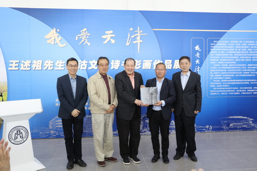开幕式上,王述祖、陈绍泉向学校赠送《东方华尔街今昔》,张亚向王述祖赠送《天商图志》,陈绍泉向学校赠送摄影作品《天津城市发展的原点——海河三岔口》。