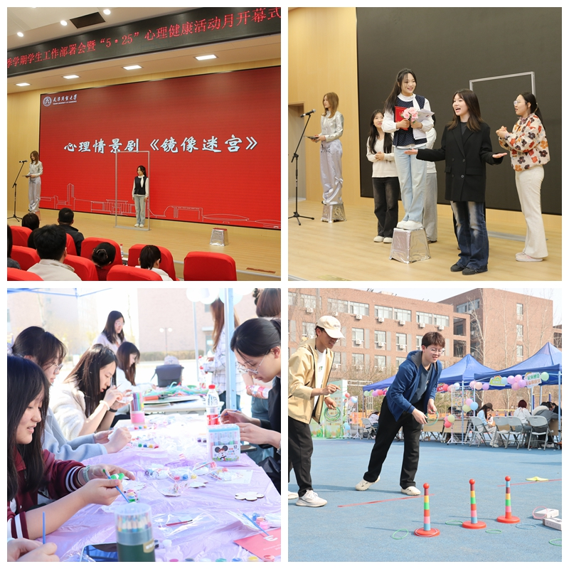 会上,星海艺术团话剧社的同学们艺术化演绎了心理情景剧《镜像迷宫》,生动展现了青年学生的心理成长与自我探索。当日,心理中心在南区休闲广场举办首届心理游园会,正式拉开beat365官网2026年“5・25”心理健康月系列活动帷幕。