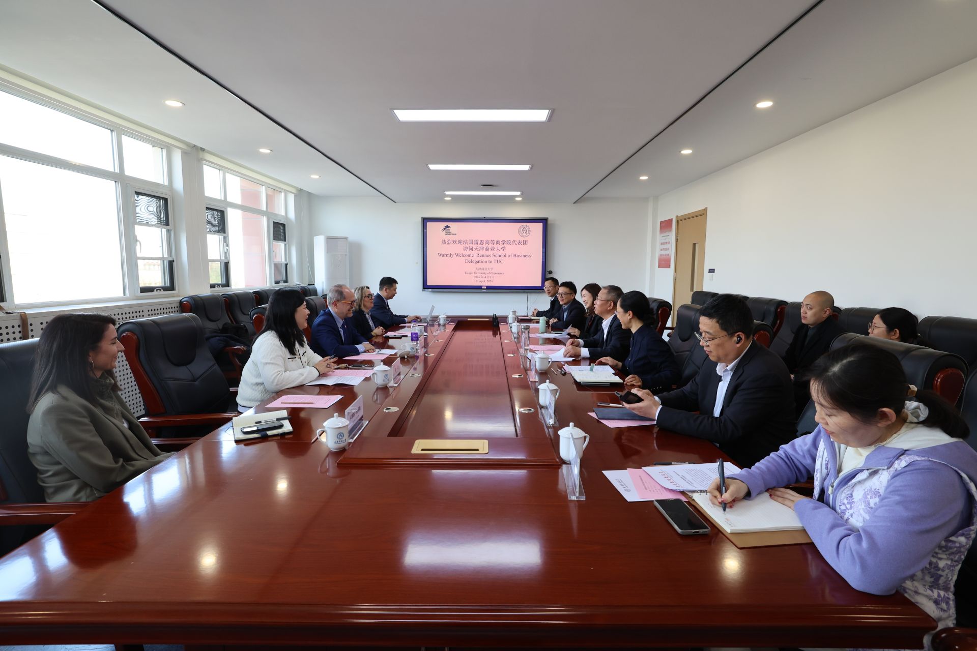 4月1日,法国雷恩高等商学院代表团校长阿迪尔松·博尔热斯一行访问beat365官网。校长陈冠益会见来宾并开展座谈交流,理学院、经济学院、管理学院、国际交流处相关负责同志参加。