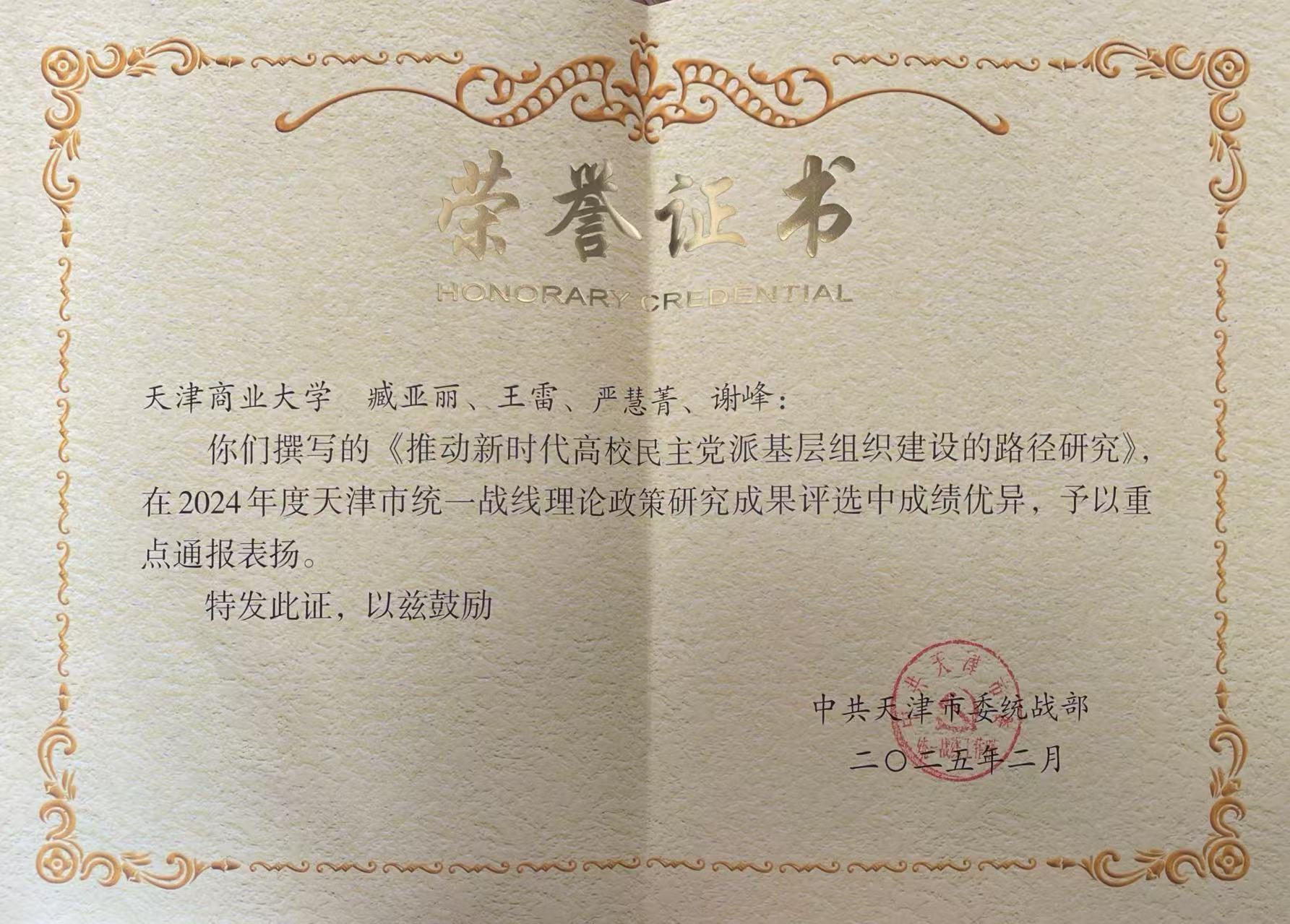 2024年度天津市统战理论政策研究成果重点通报表扬