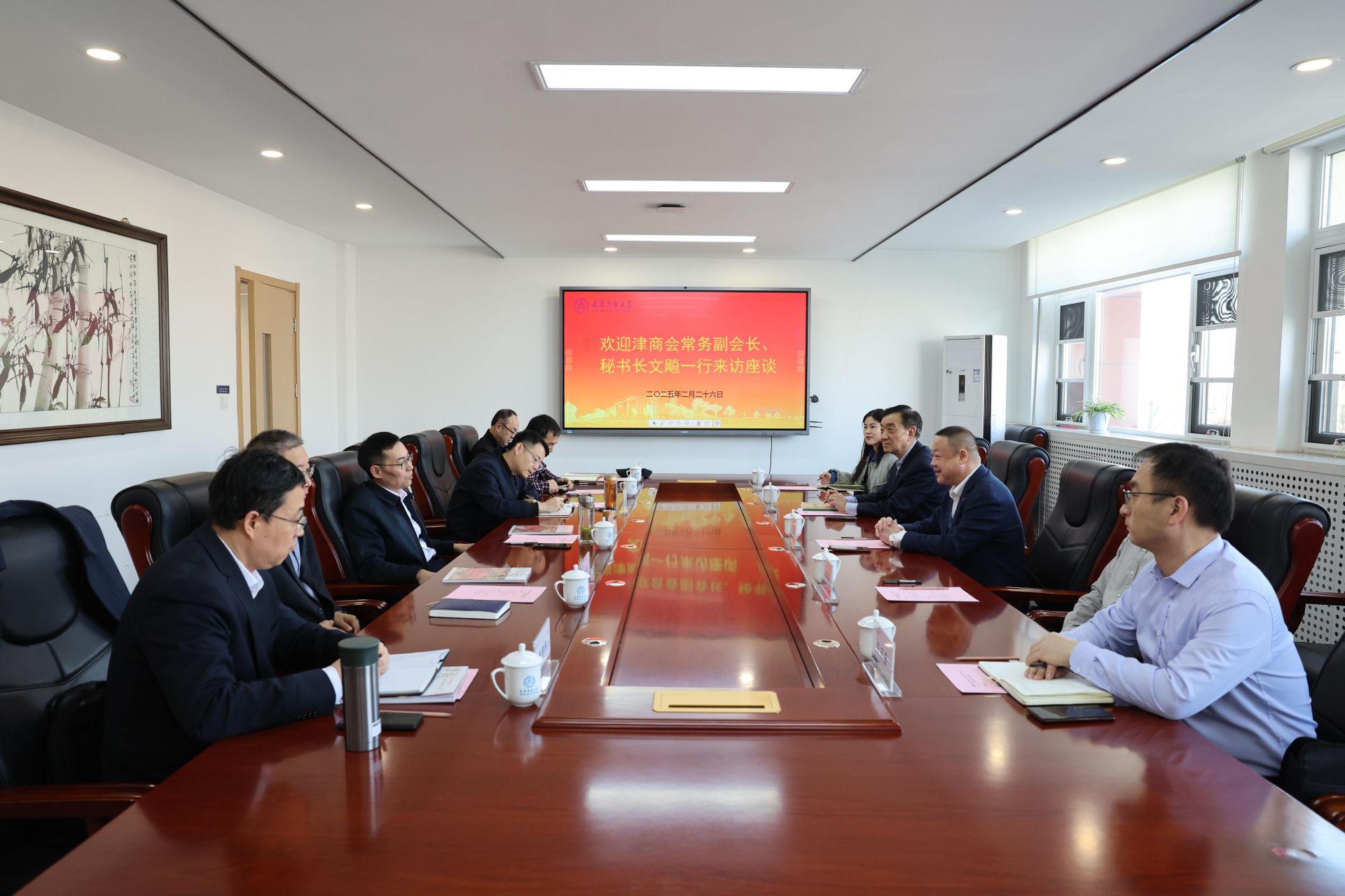学校相关部门、学院主要负责同志就深化合作提出思路和设想,表示将建立健全沟通协作机制,高效推进合作项目,深入开展津商文化研究,促进校会双方共同发展。