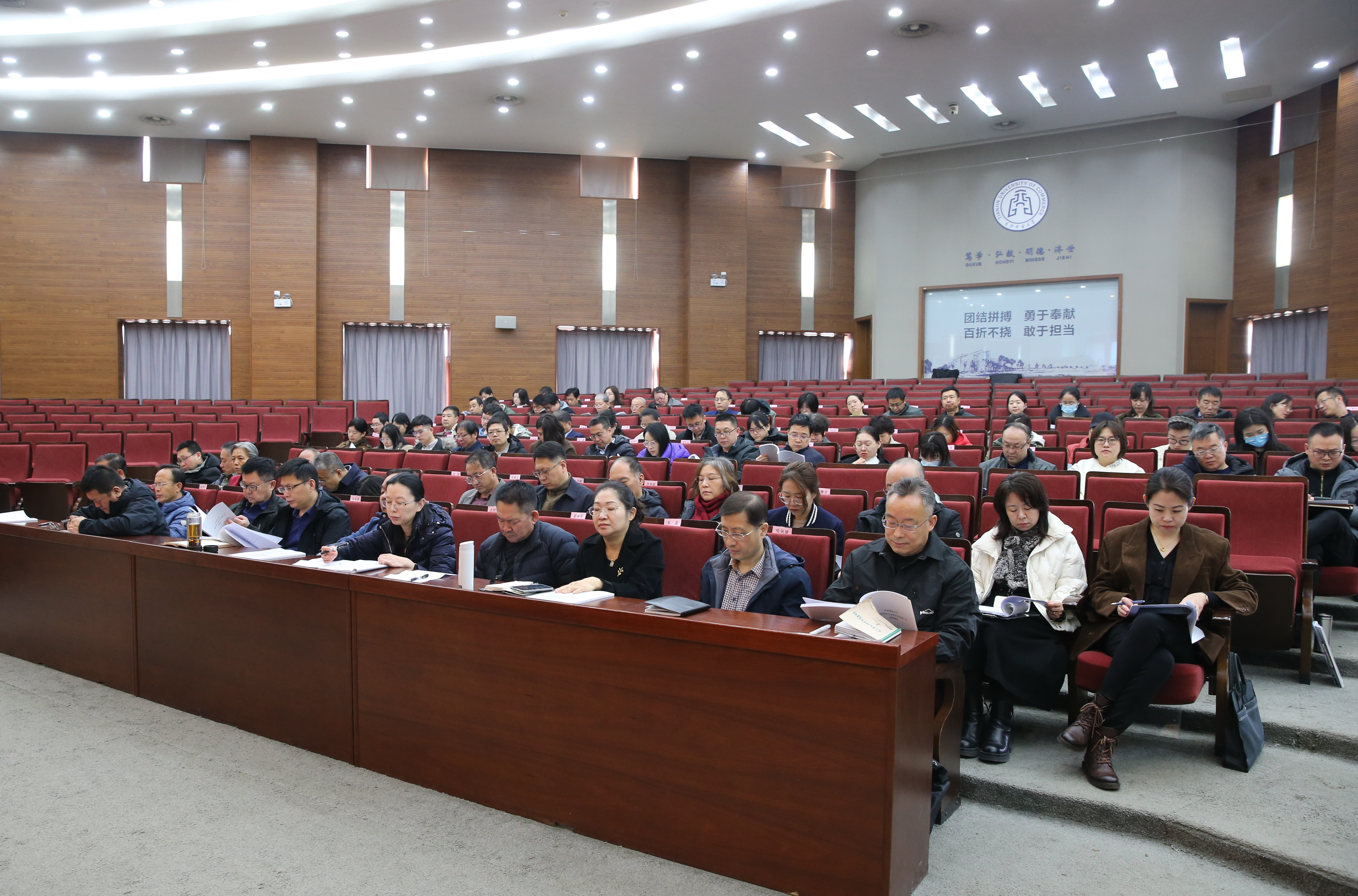 张亚指出,今年是“十四五”收官之年,是“十五五”谋划布局之年,要深入学习贯彻党的二十大和二十届二中、三中全会精神,学习贯彻全国和全市教育大会精神,进一步学习宣传、全面落实学校第三次党员代表大会精神,切实把思想和行动统一到第三次党员代表大会的各项部署上来,结合工作实际把大会提出的重要举措细化为可操作的实招硬招,在高质量推进特色鲜明高水平商业大学建设的新征程上,勠力同心、砥砺前行,以奋发有为的精神状态和求真务实的工作作风,迎接建校45周年华诞。