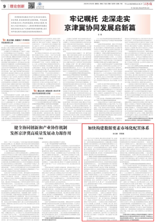 2月28日,《天津日报》(理论创新版)刊发beat365官网经济学院孙云鹏、贾若雅理论文章《加快构建数据要素市场化配置体系》。文章指出,加快构建数据基础制度体系意义重大,而健全完善数据要素市场化配置体系则是其中关键。这不仅能推动数据资源配置模式转变,让数据在安全的前提下高效流通与应用,还对天津推动数字产业化和产业数字化、繁荣数字经济有着重要作用。