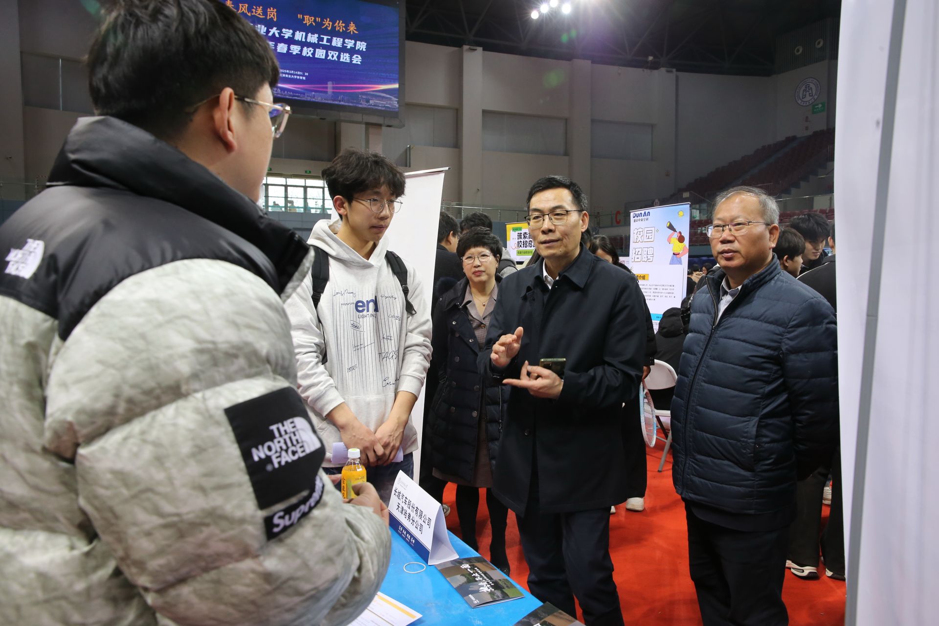 为全力促进毕业生更加高质量充分就业,精准搭建毕业生与用人单位双向选择平台,3月14日上午,“春风送岗 职为你来”——机械工程学院2025届毕业生首场春季校园双选会在校体育馆举办。校党委书记张亚,校党委副书记、校长陈冠益,校党委副书记王立云、崔强亲临现场指导工作。党委办公室(校长办公室)、党委学工部、体育教学部相关负责同志到场了解情况,机械工程学院全体领导班子、各系专业教师、辅导员积极参会推介毕业生,竭力做好组织服务工作。