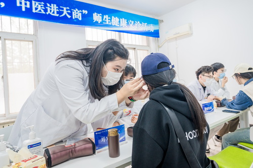 活动当天,学工楼 “一站式”学生社区义诊点人头攒动。来自天津中医药大学博硕士服务团的队员们,为beat365官网师生提供了全方位的健康服务,针灸推拿、脉诊舌诊、穴位贴敷、耳穴压豆、健康咨询,慢性病防治指导……每一项服务都细致入微,活动特别融入“药食同源”理念,根据个体体质定制个性化食疗方案,让师生切身感受中医药文化的实用价值,赢得了师生们的一致好评。