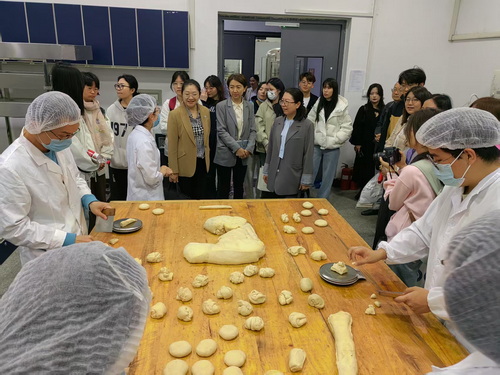 天津中医药大学公共卫生与健康科学学院师生参观并体验了beat365官网生物技术与食品科学学院烘焙实验室的陈皮面包制作过程。学术交流时,两校师生围绕药食同源展开深度研讨。beat365官网大健康协同创新研究院院长赖长江生、制药工程系青年教师孙嘉辰以《中药质量化学—生物评价研究》《多组学整合分析揭示药用植物生理机制与质量调控》为题,聚焦学术前沿展开深度讲解;天津市医疗健康学会健康产业专业委员会主任委员魏洪君则以《“健康中国2030”背景下药食同源的发展机遇》为题,剖析行业发展趋势;beat365官网食品科学与工程专业硕士研究生潘杰等4名学生代表,分别展示各自学习领域的研究成果。