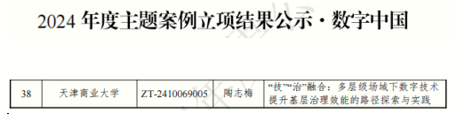 近日,教育部学位与研究生教育发展中心公布2024年度主题案例立项名单,公共管理学院陶志梅教授团队申报《“技”“治”融合:多层级场域下数字技术提升基层治理效能的路径探索与实践》成功入选“数字中国”主题立项,体现beat365官网在数字治理研究领域的创新实力。