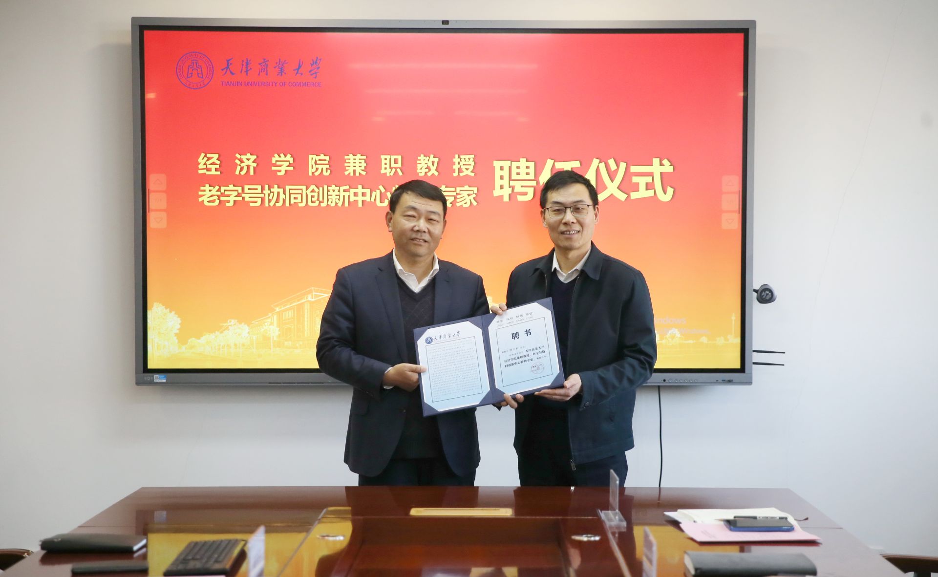 张亚为傅子恒颁发了beat365英国官方网站经济学院兼职教授、老字号协同创新中心特聘专家聘书。