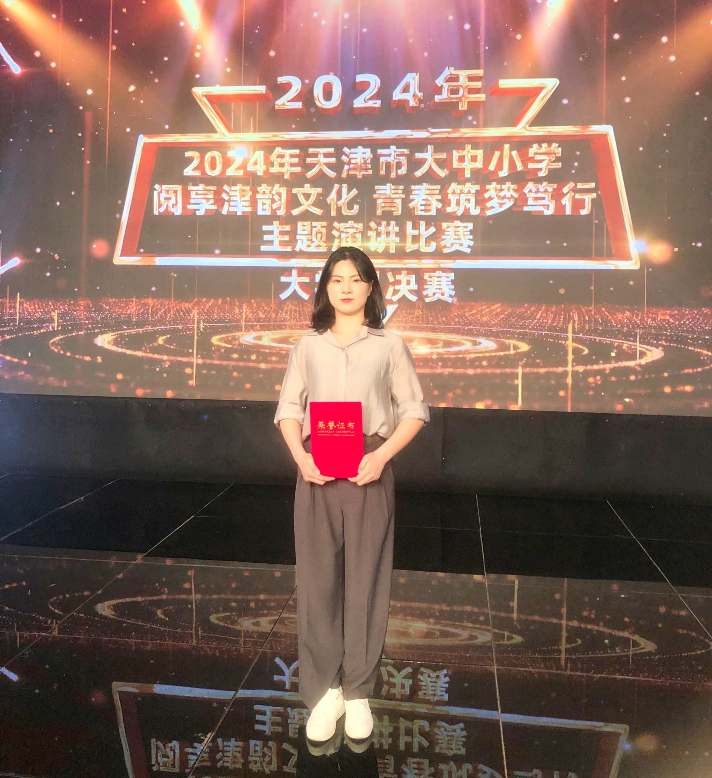 2024年天津市大中小学“悦享津韵文化,青春筑梦笃行”主题演讲比赛自今年5月启动,分为大学组、中学组和小学组3个组别,各评选出15名进入决赛。学校前期组织了初赛评选,市级决赛采用现场演讲形式进行,由天津市广播电视台录制大赛视频,面向全市大中小学进行教育宣传,引导青年学生深层次宣传天津文化、讲好天津故事,切实增强历史自信和文化自信,自觉把青春奋斗融入全面建设社会主义现代化大都市、奋力谱写中国式现代化天津篇章中。(审稿:王樱洁)