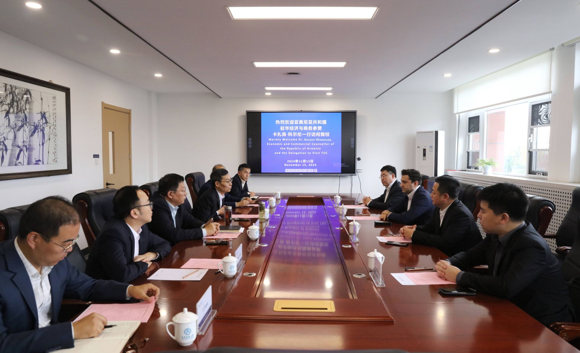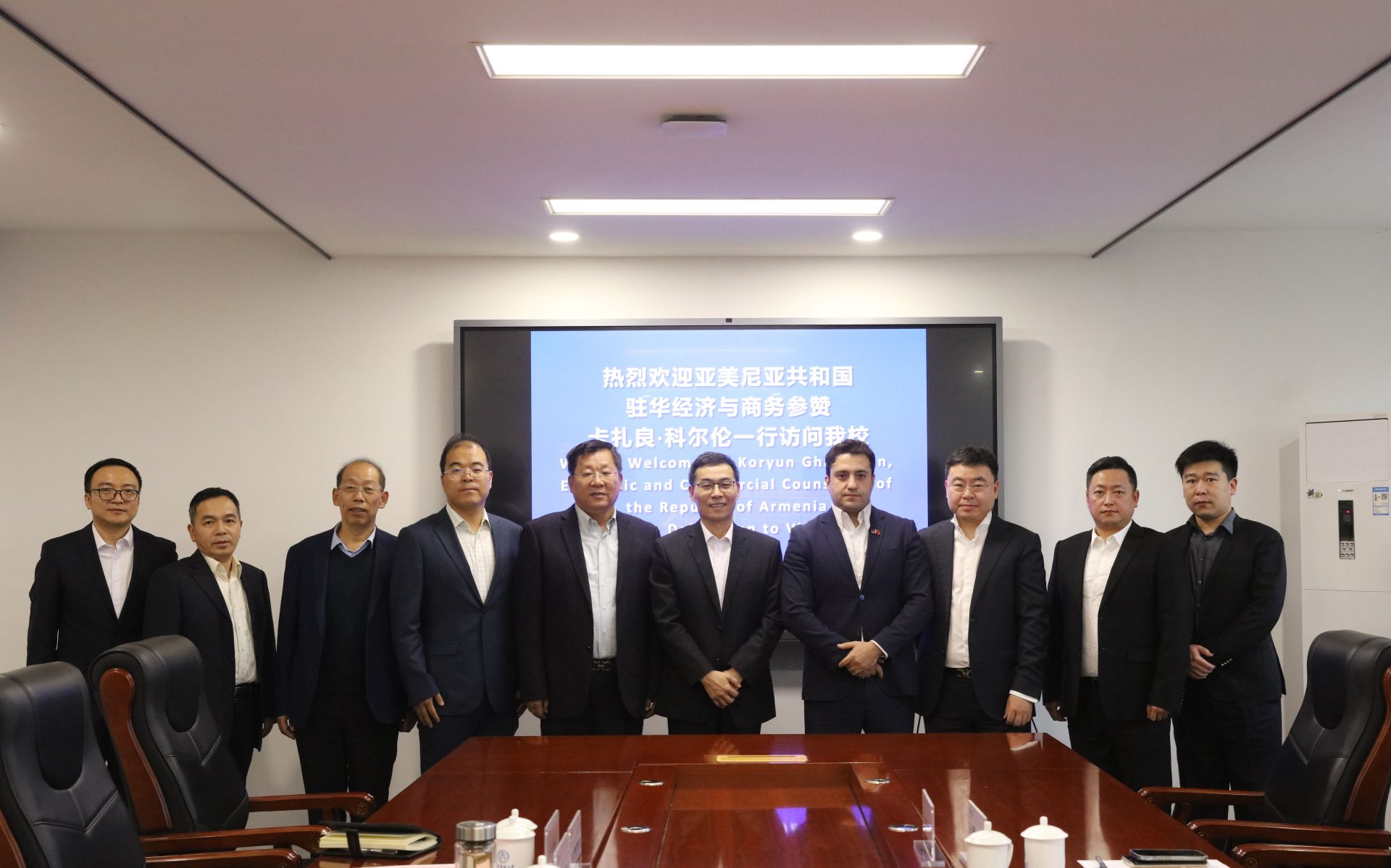 11月15日下午,亚美尼亚共和国驻华使馆经济与商务参赞卡扎良·科尔伦、亚美尼亚商会代表杨军一行4人访问beat365官网。校党委书记张亚、副校长齐恩平出席。天津伍创电子商务有限公司董事长李富民校友应邀参会。老字号协同创新中心、科研处、国际交流处主要负责同志参加。