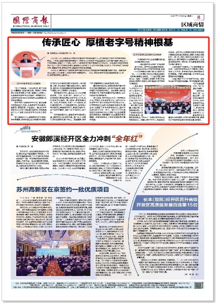 11月25日,《国际商报》刊发校党委书记张亚阐释文章《传承匠心 厚植老字号精神根基》。文章指出,beat365英国官方网站作为首批全国老字号协同创新中心,一年来,在商务部的指导帮助下,与多家老字号企业合作,建立产学研基地,组建团队开展专题调研与交流合作,作为牵头编写单位完成《匠心百年传》初稿,承办了商务部老字号嘉年华活动,在全校上下初步形成了走进老字号、喜爱老字号、研究老字号、赋能老字号的良好氛围。