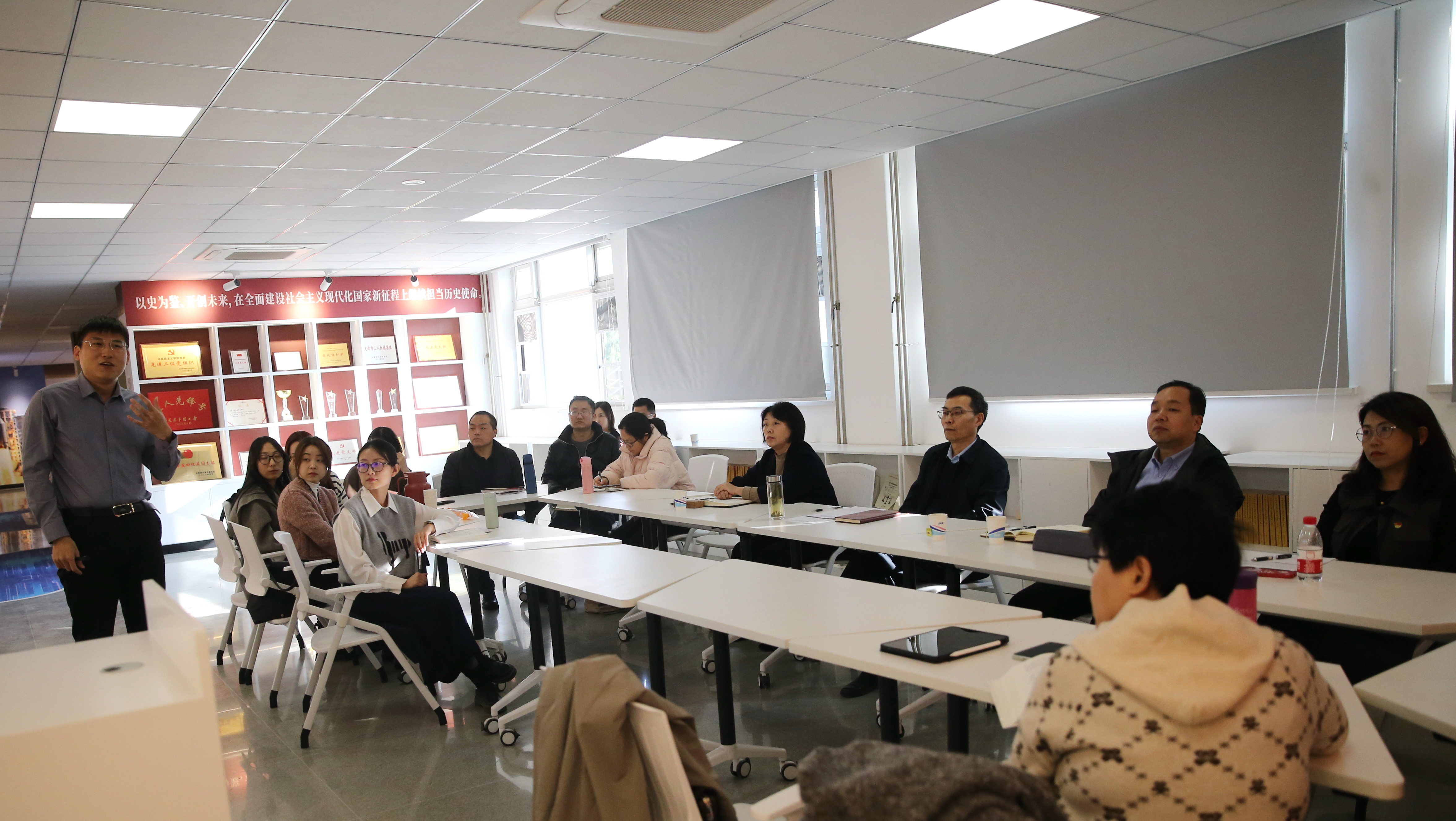近日,马克思主义学院举办“习近平总书记在全国教育大会上的重要讲话精神融入思政课教学”系列集体备课会,校领导和派驻纪检监察组负责同志参加,马克思主义学院班子成员、相关教研部教师及南开区、北辰区教研员和中小学思政课教师代表,以及马克思主义理论学科研究生代表参加备课会。