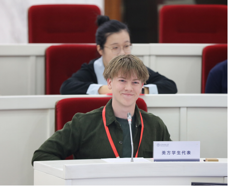 美国学生代表Benjamin Anderson在仪式上发表了感言,对能够获得此次来华研学的宝贵机遇表达了由衷的珍视与热切的期待。他表示,将以最为饱满的热情与积极主动的态度踊跃参与到各项研学活动之中,并在此次研学活动结束后,将在中国丰富的所见所闻带回美国,与更多的美国青年分享这段难忘的经历。