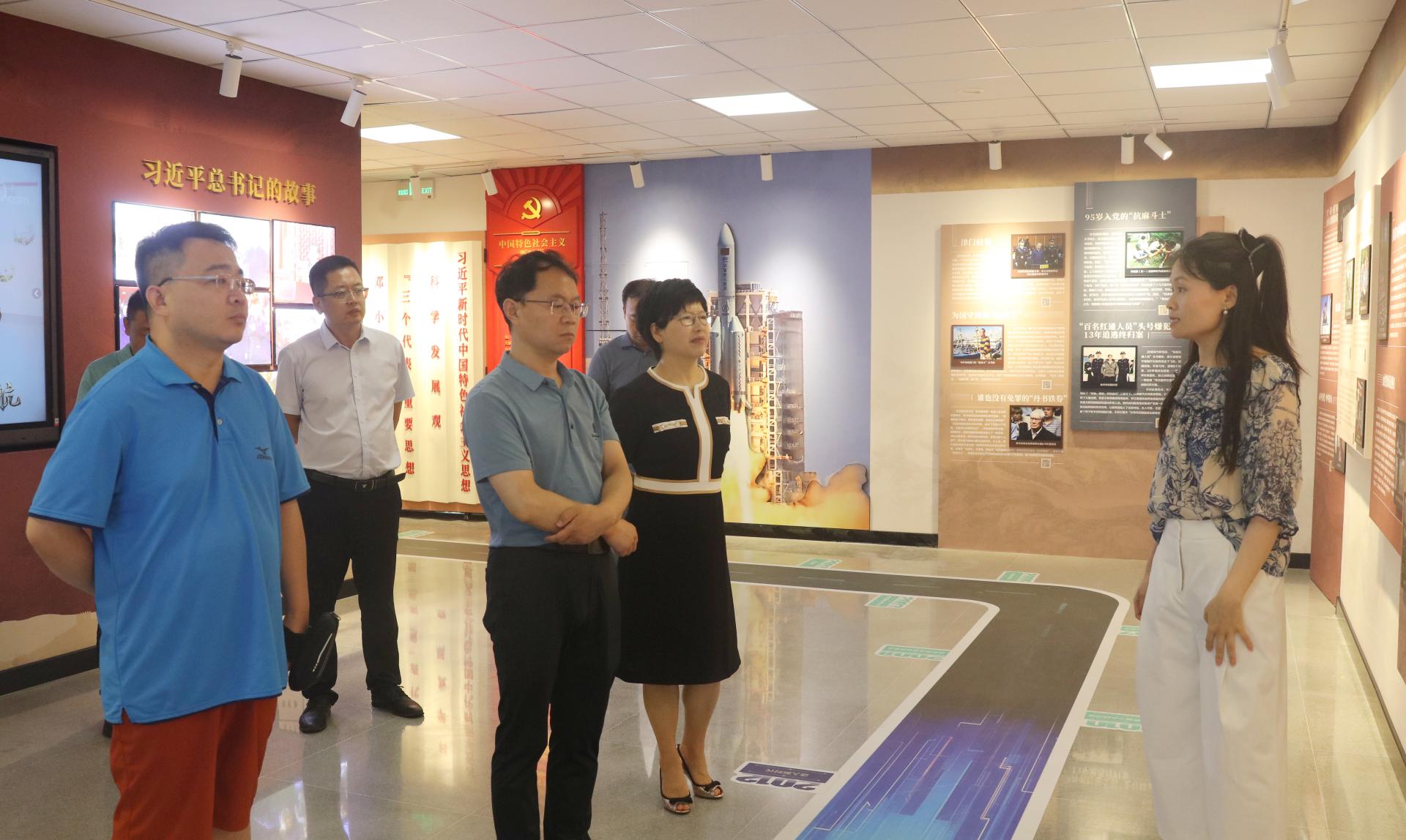 在讲解人员引领下,郝月峰、董振华详细参观了实验室,认真观看听取了展出的100个党史党建故事,了解了300个习近平总书记的故事,观看了《引领伟大复兴的百年先锋》专题片,体会了中国共产党从石库门到天安门、从兴业路到复兴路的辉煌创业历程,体会党史里的故事、学习故事里的党史。