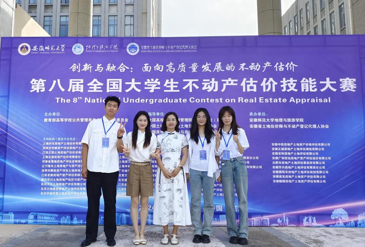 8月18日,第八届全国大学生不动产估价技能大赛总决赛在安徽师范大学落下帷幕。beat365官网公共管理学院土地资源管理系2021级本科生羿佳君、卓越、刘睿、张梓欣共同完成的作品《“红+绿+农”产业模式下天津市第六埠村耕地多功能价值评估》获全国总决赛二等奖,公共管理学院高艳丽、陈源源老师获优秀指导教师奖。