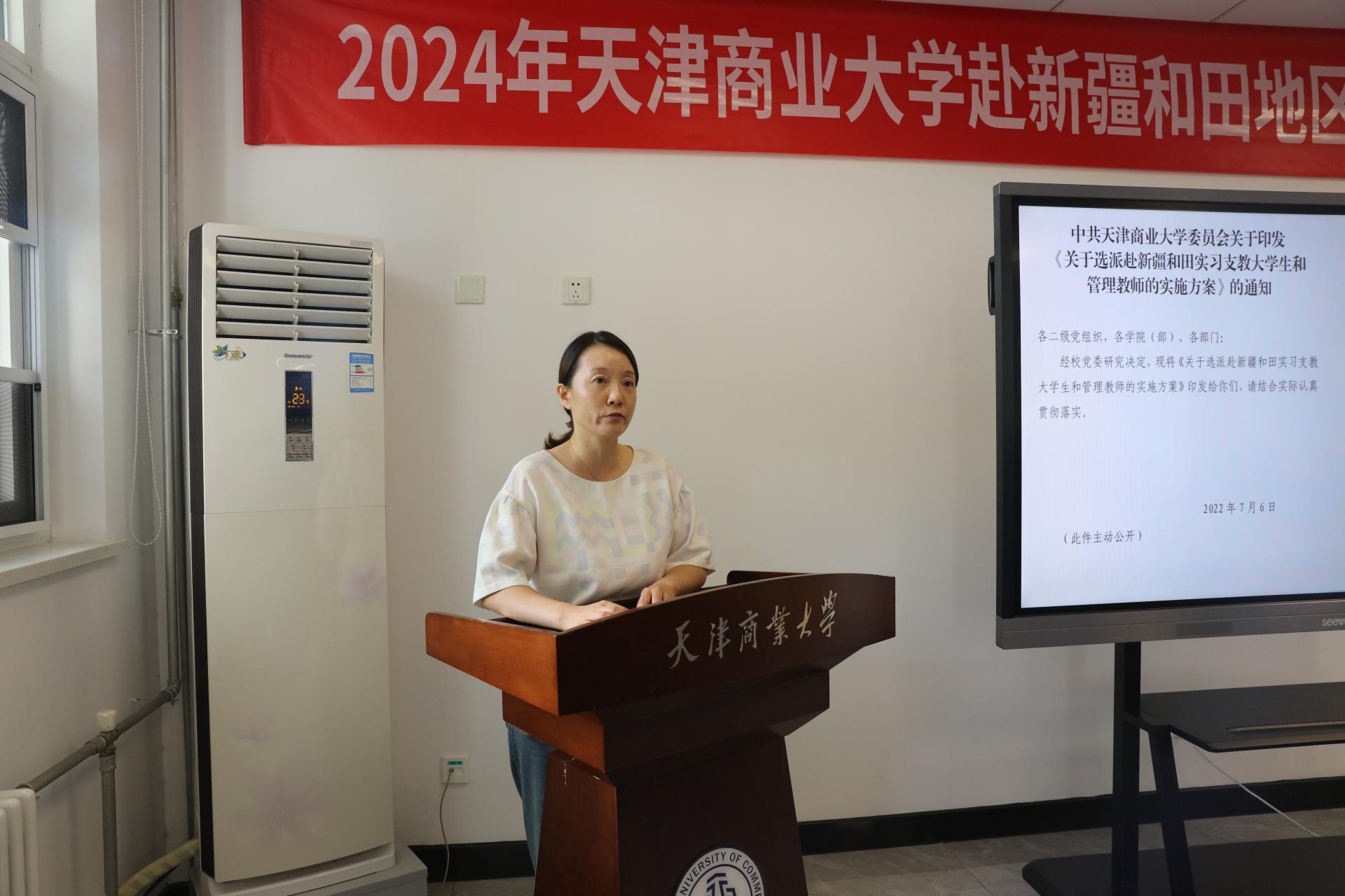 王立云代表学校党委向积极响应党和国家号召、奔赴祖国边疆开展实习支教的师生致以崇高敬意和由衷感谢,并提出三点希望:一是牢记神圣使命,做民族团结的播种机。实习支教工作不仅是一次人生体验,更是一次为祖国做奉献的难得机遇。要用最饱满的热情、最积极的行动和最专业的工作服务好国家重大发展战略。二是牢记天商学子和人民教师身份,高质量完成任务。学为人师,行为世范。要时刻谨记、珍惜双重身份,在教学质量和课程设计上下功夫,高质量高标准完成支教任务。三是遵守工作纪律,守好安全底线。严格按照岗前培训和见习实习各项要求,规范自身线上线下言行。既要照顾好自己,也要照顾好同伴,平安完成支教任务。