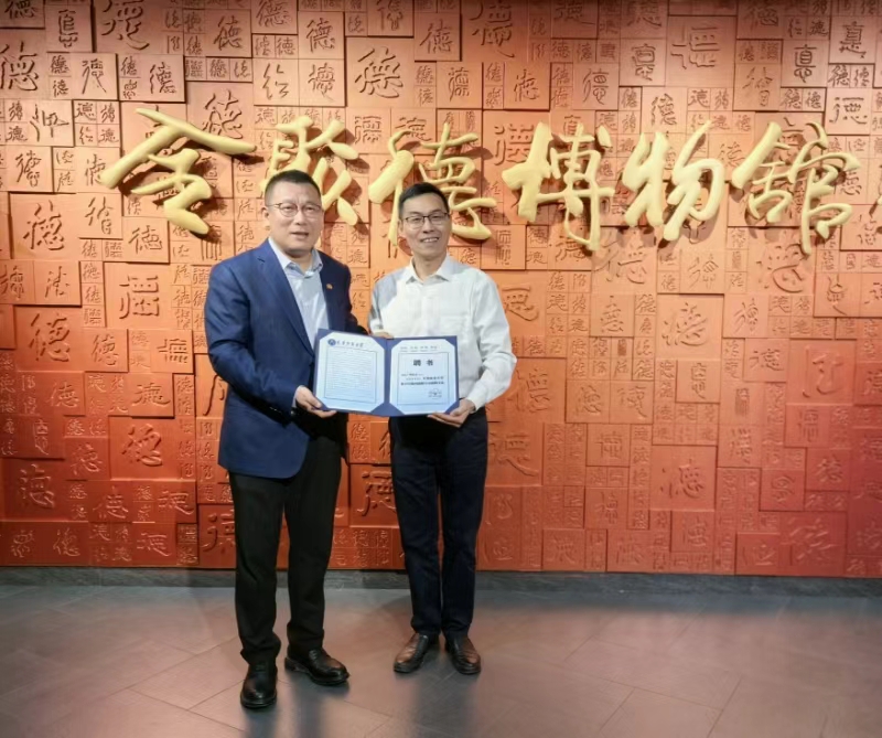 张亚向周延龙颁发“beat365英国官方网站老字号协同创新中心特聘专家”证书