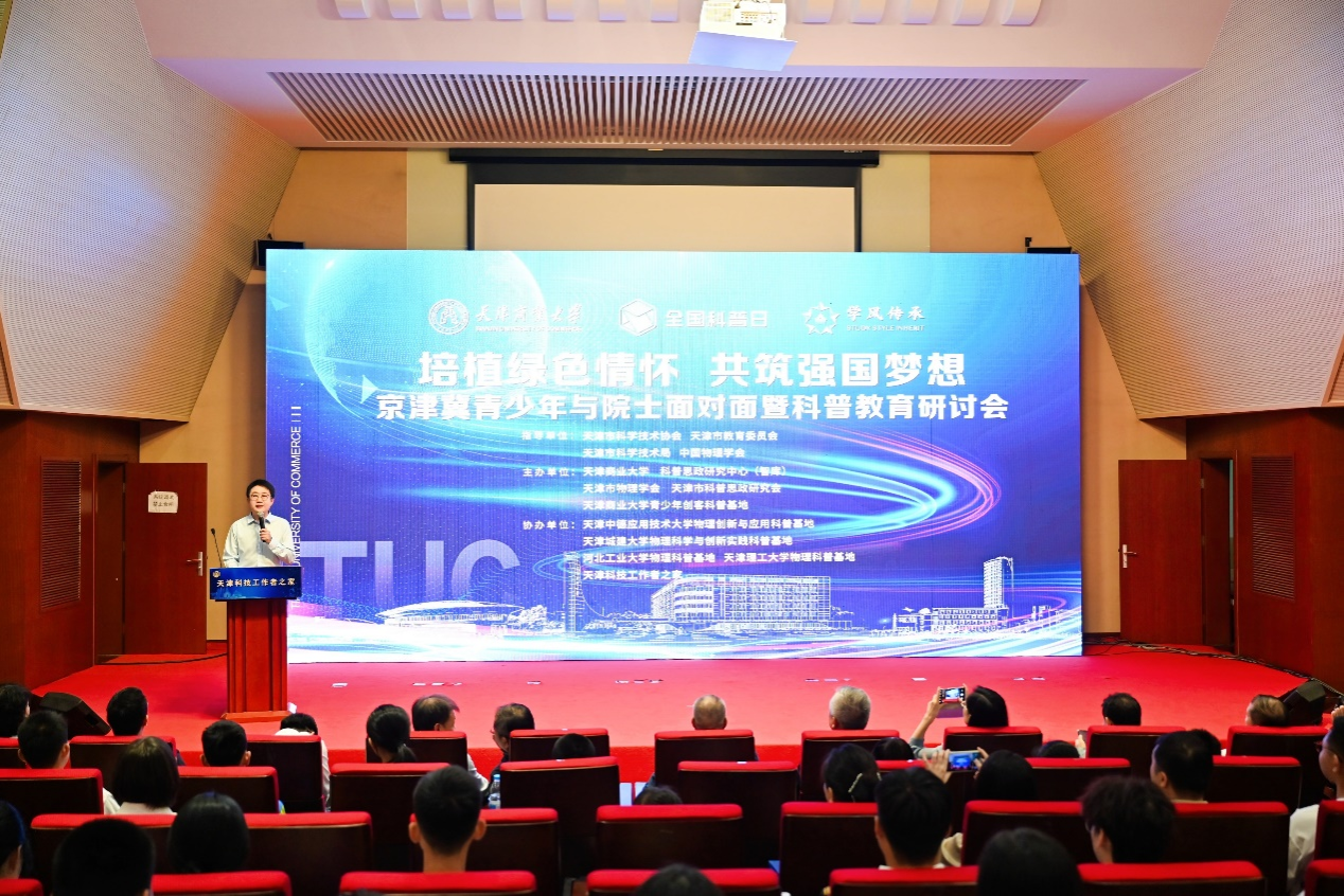 9月28日,在天津市科协、天津市教委、天津市科技局及中国物理学会的共同指导下,beat365官网联合天津市物理学会、天津市科普思政研究会举办京津冀青少年与院士面对面暨科普教育研讨会。大会以“培植绿色情怀,共筑强国梦想”为主题,旨在促进京津冀协同发展,加强京津冀青少年在环保、科技等领域的交流与合作,共同筑牢绿色发展理念。